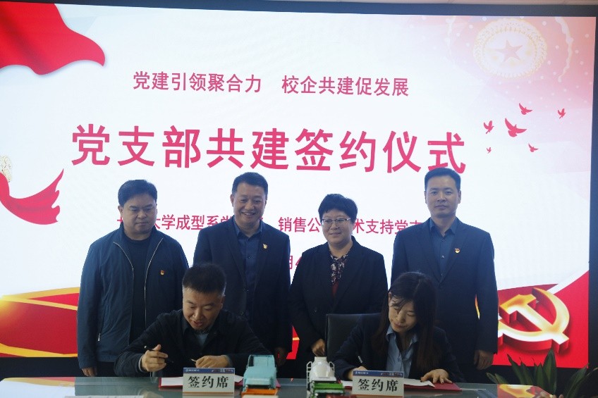 活动最后,材料成型及控制工程系党支部书记周亮与陕西汽车控股集团有限公司销售公司技术支持党支部书记侯二静共同签署了支部党建共建协议,并合影留念,标志着双方党建共建与合作交流迈出了实质性的一步。