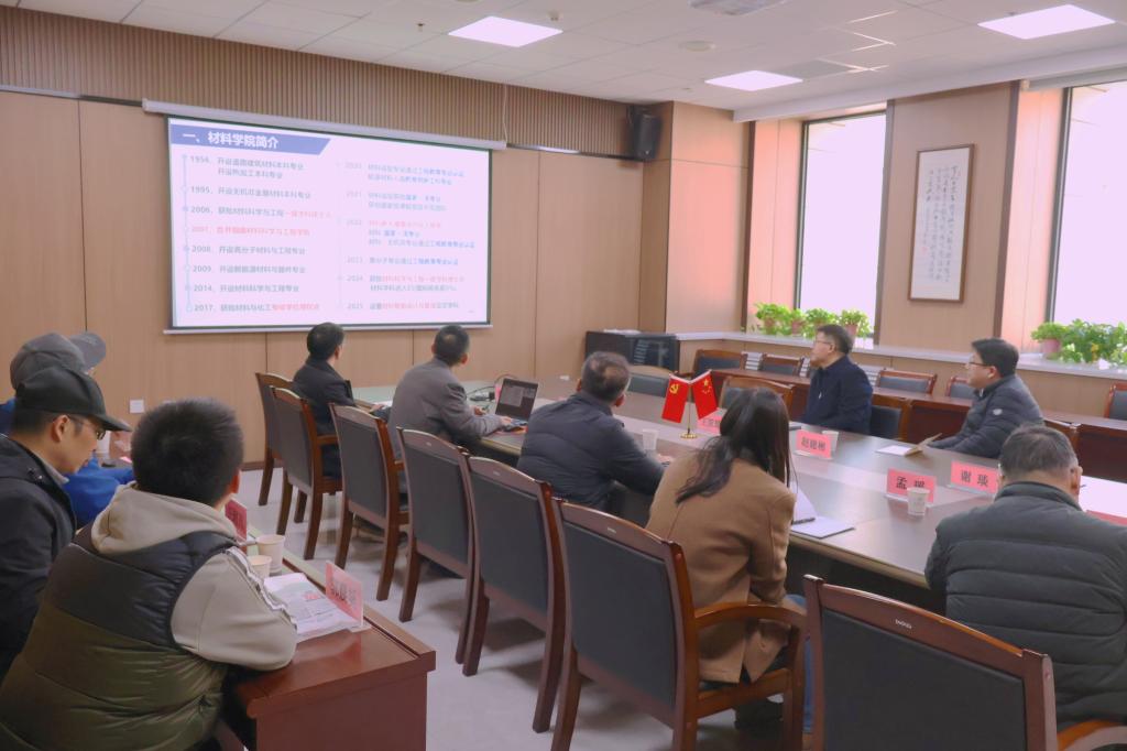 王亚琼、赵建彬一行活动结束后到材料学院开展调研。郭亚杰详细汇报了学院实验中心在平台建设、安全管理、教学科研融合等方面的工作,以及未来的发展规划与重点方向。