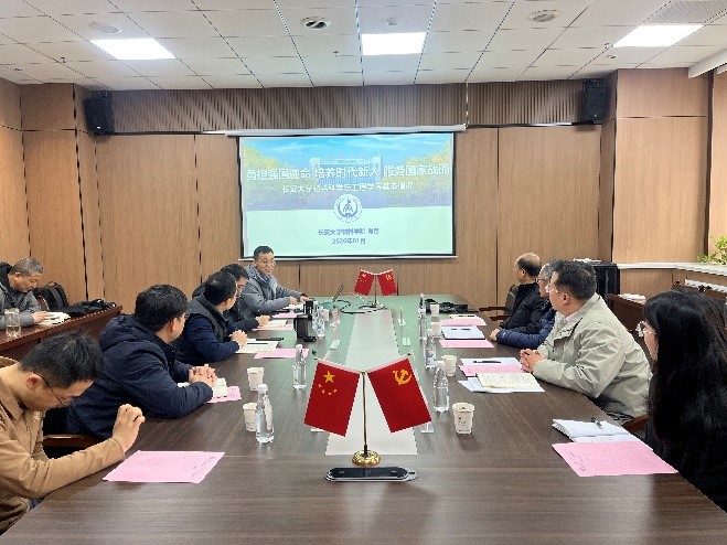 郭亚杰向鲁宁斌一行的到来表示热烈欢迎,并介绍了长安大学和材料学院的发展历史、学科建设现状以及未来发展方向,重点阐述了学院在材料设计、成型加工及相关交叉领域的科研优势和布局情况。