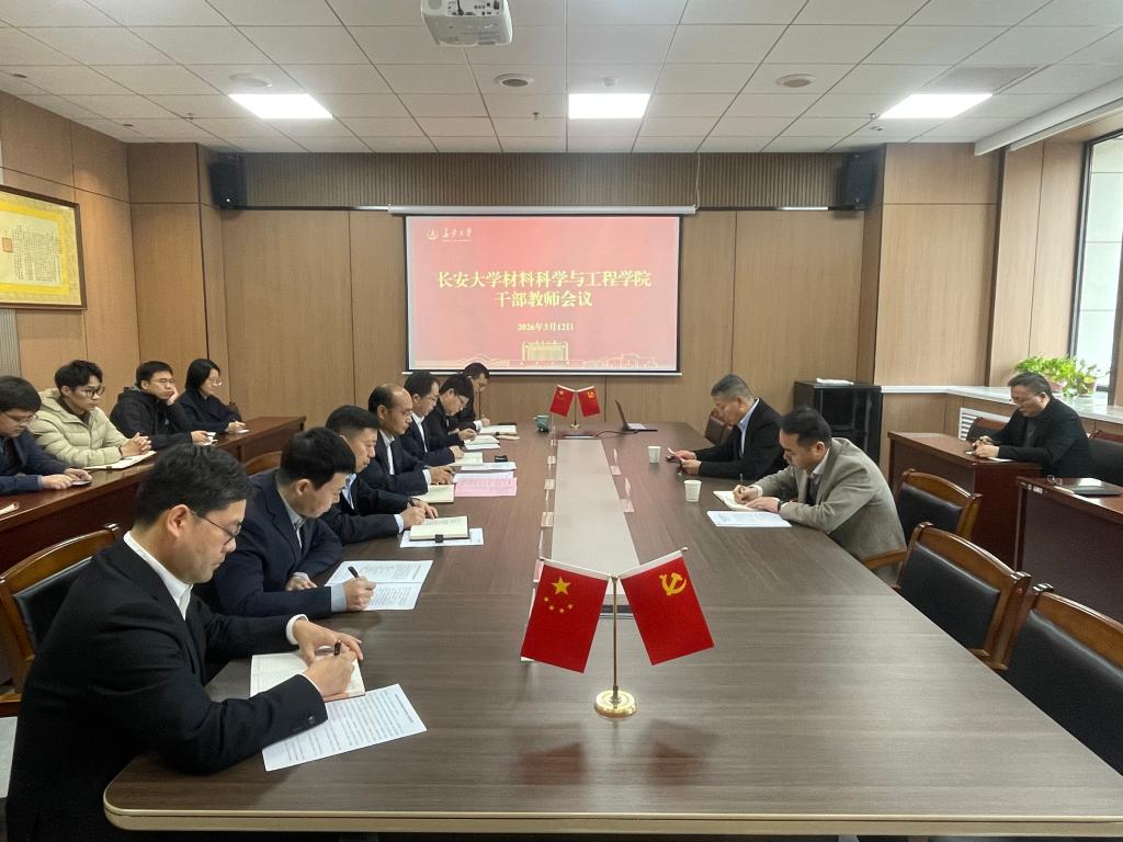 为进一步加强学院领导班子建设,推动学院事业高质量发展,3月12日,材料学院召开干部教师会议宣布学校党委任职决定。校党委常委、副校长裴建中,校党委常委、组织部部长石松出席会议,学院领导班子成员、党委委员、纪委委员、科级干部、系(中心)主任、党支部书记等参加会议。会议由学院党委书记王振军主持。
