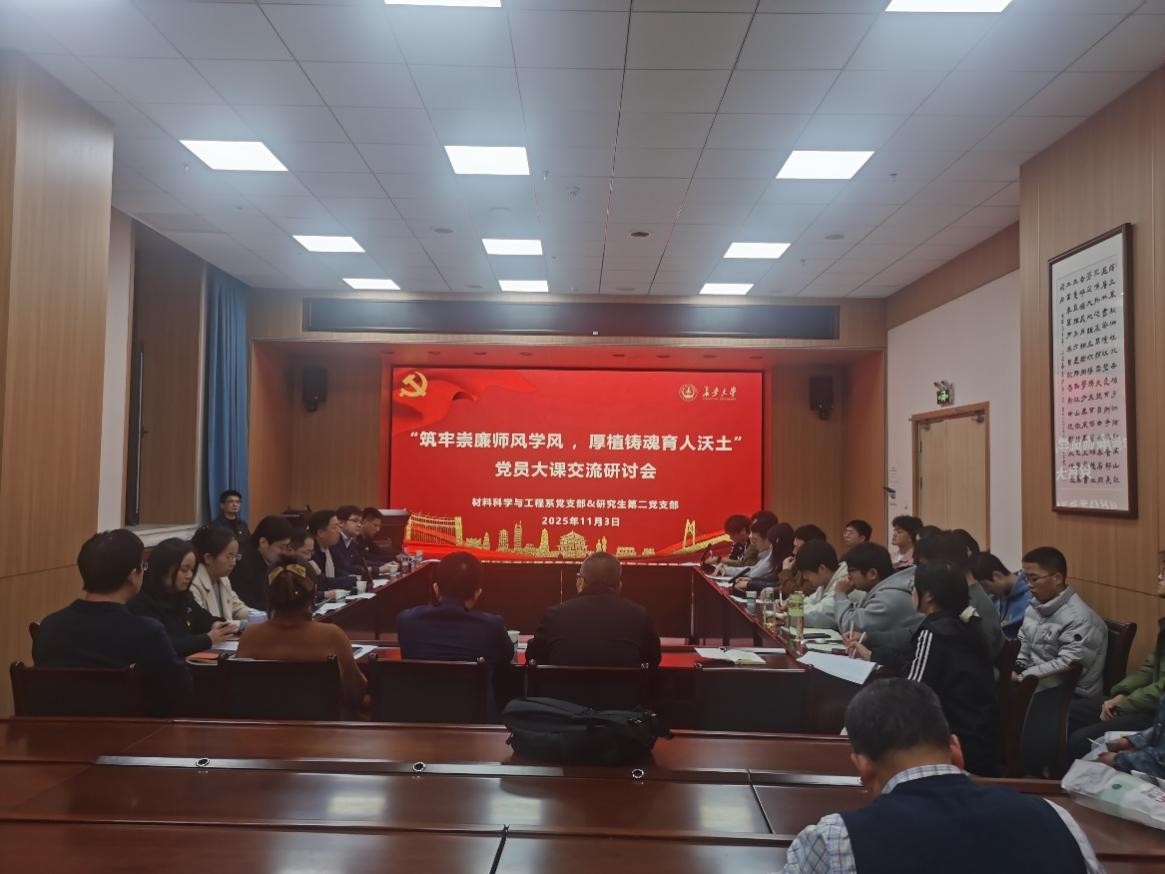 为深入推进新时代廉洁文化建设,强化师生党员的廉洁自律意识,筑牢拒腐防变的思想道德防线。11月3日,材料科学与工程系党支部与研究生第二党支部联合开展了以“筑牢崇廉师风学风,厚植铸魂育人沃土”为主题的党员大会暨交流研讨会。院长肖月,学院党委副书记、副院长、纪委书记宁育国,副院长徐义库等同志出席会议,会议由教工党支部书记关博文同志主持。