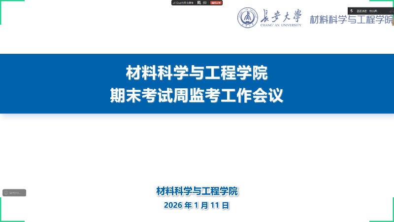 为进一步严肃考风考纪,规范考试监考流程,确保考试周各项工作平稳有序开展,1月11日,材料学院以线上会议形式召开了考试周监考工作专题部署会。各系主任、全体监考教师参会,会议由学院副院长徐义库主持。